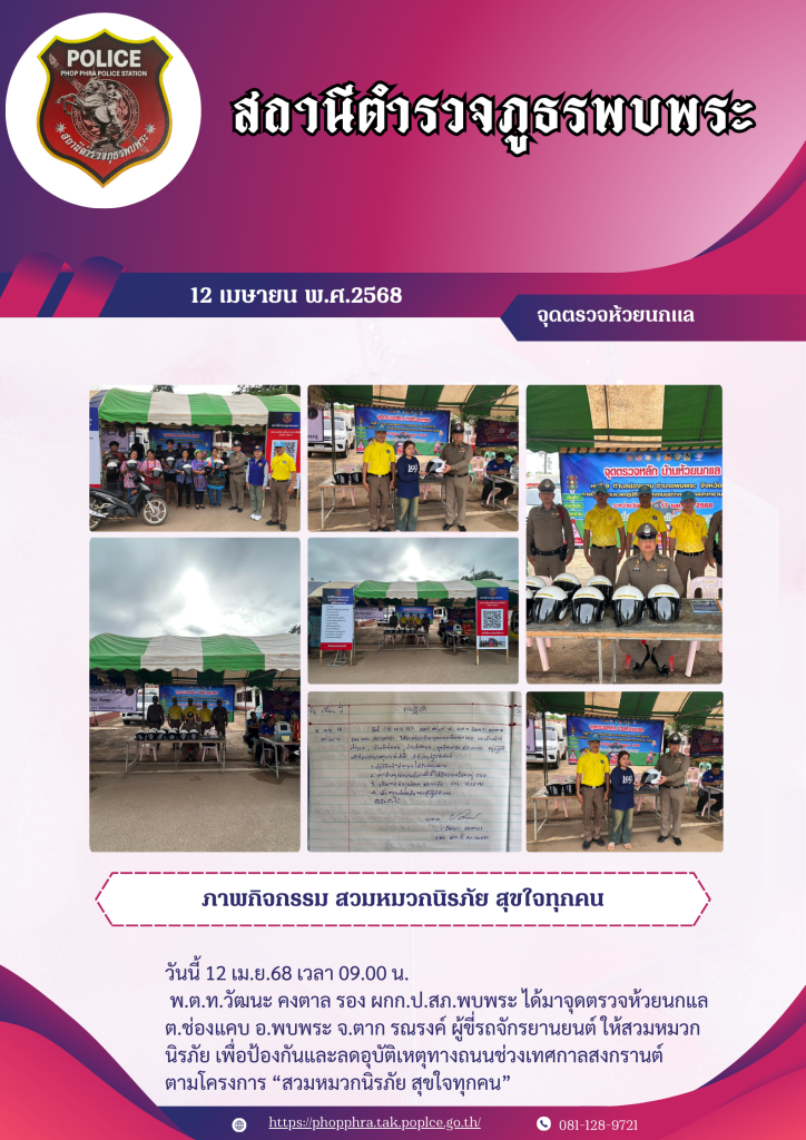 วันนี้ 12 เม.ย.68 เวลา 09.00 น. พ.ต.ท.วัฒนะ คงตาล รอง ผกก.ป.สภ.พบพระ ได้มาตรวจเยี่ยมจุดตรวจห้วยนกแล พบ เจ้าหน้าที่ตำรวจ, เจ้าหน้าที่ทหาร, เจ้าหน้าที่ฝ่ายปกครอง, ชุดจิตอาสา สภ.พบพระ อยู่ปฏิบัติหน้าที่รายงานเหตุการณ์ปกติ กำชับการปฏิบัติดังนี้