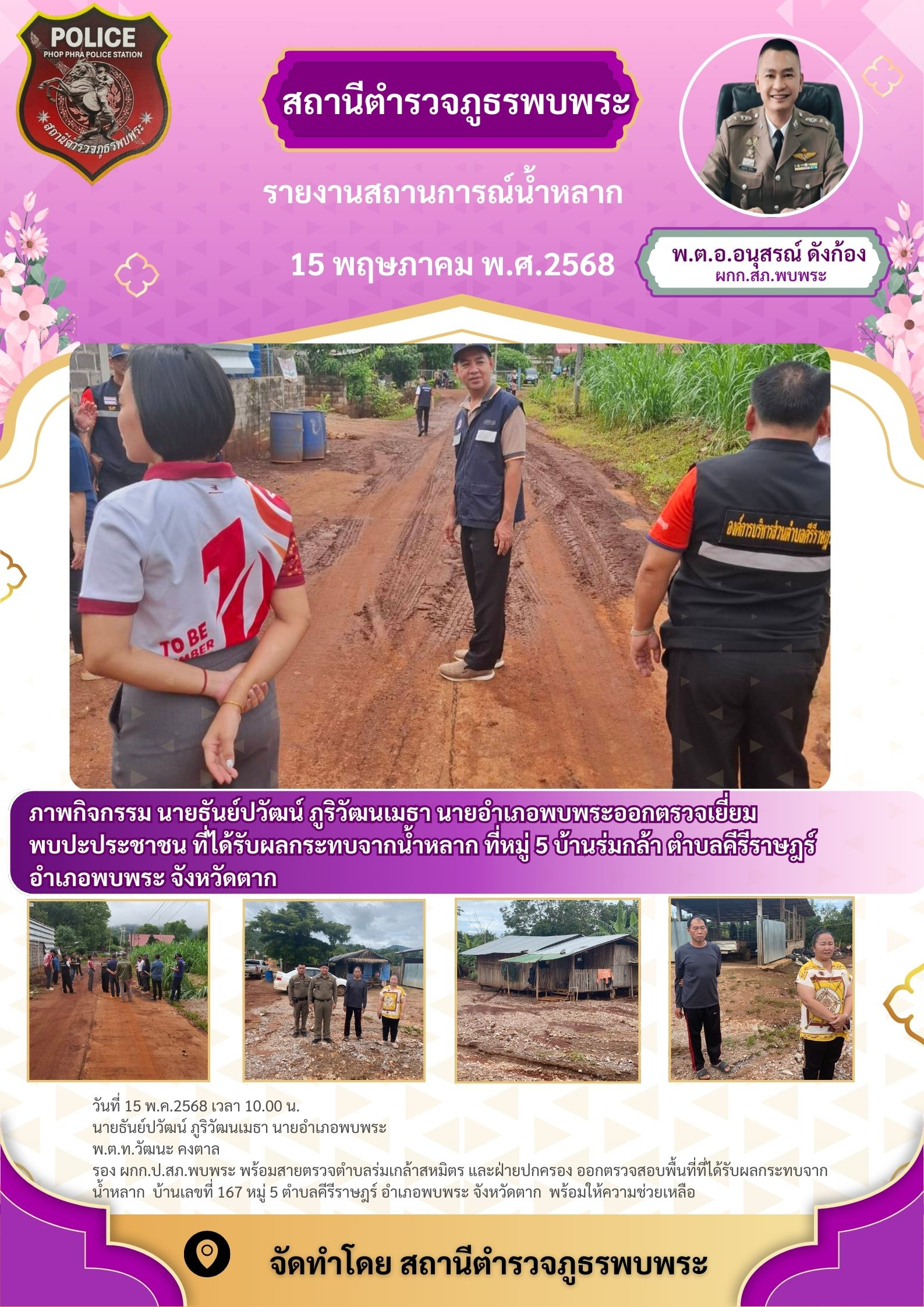 วันที่ 15 พ.ค.2568 เวลา 10.00 น. ภายใต้อำนวยการ พ.ต.อ.อนุสรณ์ ดังก้อง ผกก.สภ.พบพระ ได้มอบหมายให้พ.ต.